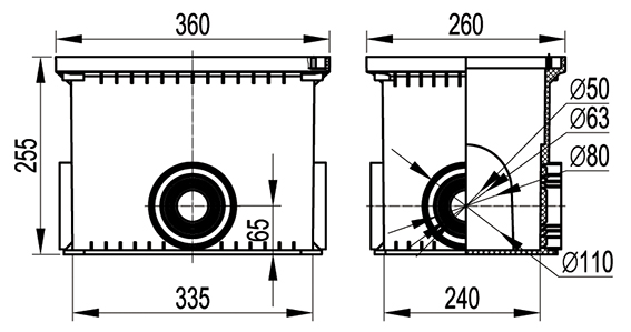 Смотровое устройство (колодец) 335х240х255 для труб d=50-63-110мм