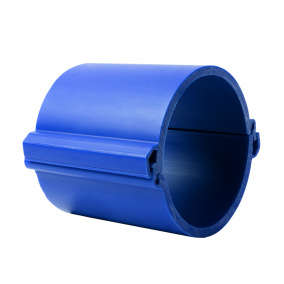 При монтаже кабель укладывается на нижнюю часть трубы, верхняя часть затем защелкивается. Муфты не требуются.